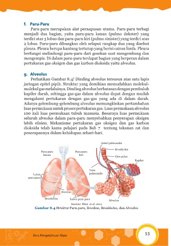 Gambar 8.4 Struktur Paru-paru, Bronkus, Bronkiolus, dan Alveolus