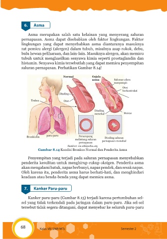 Gambar 8.14 Kondisi Bronkus Normal dan Penderita Asma