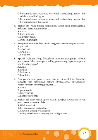 9.  Paru-paru seorang pasien penuh dengan cairan. Setelah dianalisis