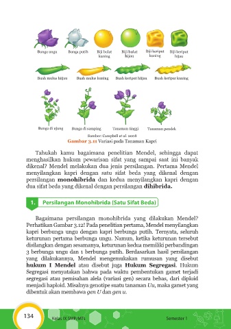 persilangan monohibrida dan kedua menyilangkan kapri dengan
