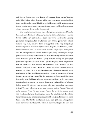 patriarkhi Asmat. Sedangkan feminisme eksistensialis Ani tergambar melalui tokoh