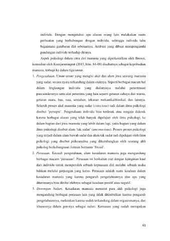 Seluruh proses akal manusia yang sadar (conscious) tadi dalam ilmu psikologi