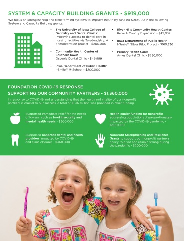 healthy smiles for all Iowans SUPPORTING OUR COMMUNITY PARTNERS - $1,360,000