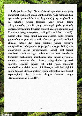 dengan sporogonium di bagian sporofit atas(D); Spora(E); dan