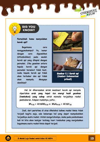 maka kepala korek api tidak Gambar 2.1 Korek api