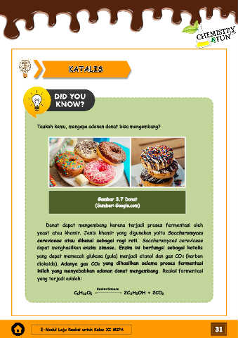 inilah yang menyebabkan adonan donat mengembang. Reaksi fermentasi
