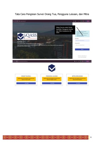 6Tata Cara Pengisian Survei Orang Tua, Pengguna Lulusan, dan MitraAkses Survei untuk Orang tua/Wali, Pengguna lulusan dan Mitra Kerjasama klik disini