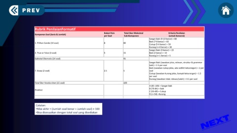 •Nilai akhir = (Jumlah soal benar ÷ Jumlah soal) × 100