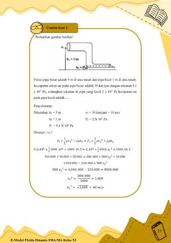 Kecepatan aliran air pada pipa besar adalah 36 km/jam dengan tekanan 9,1