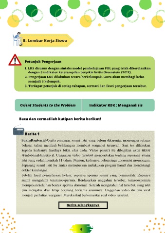Orient Students to the Problem Indikator KBK : Menganalisis