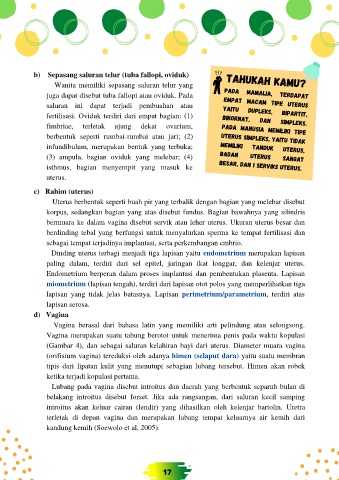 isthmus, bagian menyempit yang masuk ke besar, dan 1 serviks uterus.