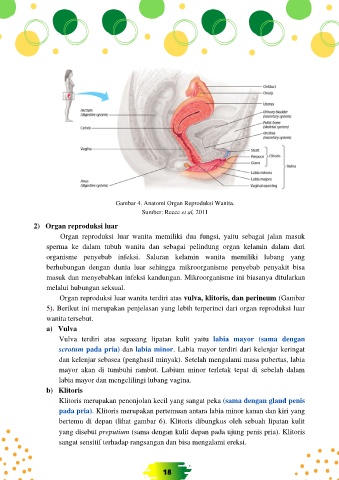 Organ reproduksi luar wanita terdiri atas vulva, klitoris, dan perineum (Gambar