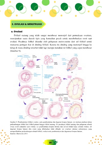 perkembangan folikel dari folikel primer hingga folikel matang. (b) pecahnya folikel matang dan pelepasan sebuah