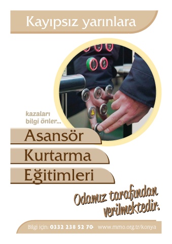 Kayıpsız yarınlara Asansör Kurtarma Egitimleri Bilgi için: 0332 238 52 70 • www.mmo.org.tr/konya 31