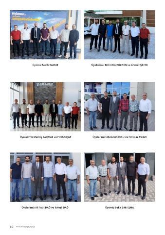 Üyemiz Melih SAMUR Üyelerimiz Bahattin DÜZGÜN ve Ahmet ŞAHİN Üyelerimiz Memiş KAÇMAZ ve Fatih UÇAR Üyelerimiz Abdullah KULU ve H.Yasin ASLAN Üyelerimiz Ali Fuat DAĞ ve İsmail DAĞ Üyemiz Bekir Sıtkı ELMA 80 www.mmo.org.tr/konya