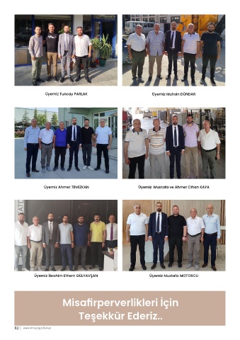 Üyemiz Tuncay PARLAK Üyemiz Muhsin DÜNDAR Üyemiz Ahmet TEMİZKAN Üyemiz Mustafa ve Ahmet Cihan KAYA Üyemiz İbrahim Ethem GÜLYAVŞAN Üyemiz Mustafa MOTORCU Misafirperverlikleri İçin Teşekkür Ederiz.. 82 www.mmo.org.tr/konya