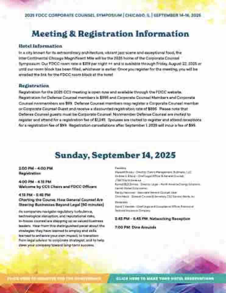 2025 FDCC CORPORATE COUNSEL SYMPOSIUM | CHICAGO, IL | SEPTEMBER 14-16, 2025