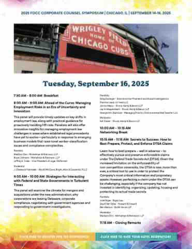 2025 FDCC CORPORATE COUNSEL SYMPOSIUM | CHICAGO, IL | SEPTEMBER 14-16, 2025