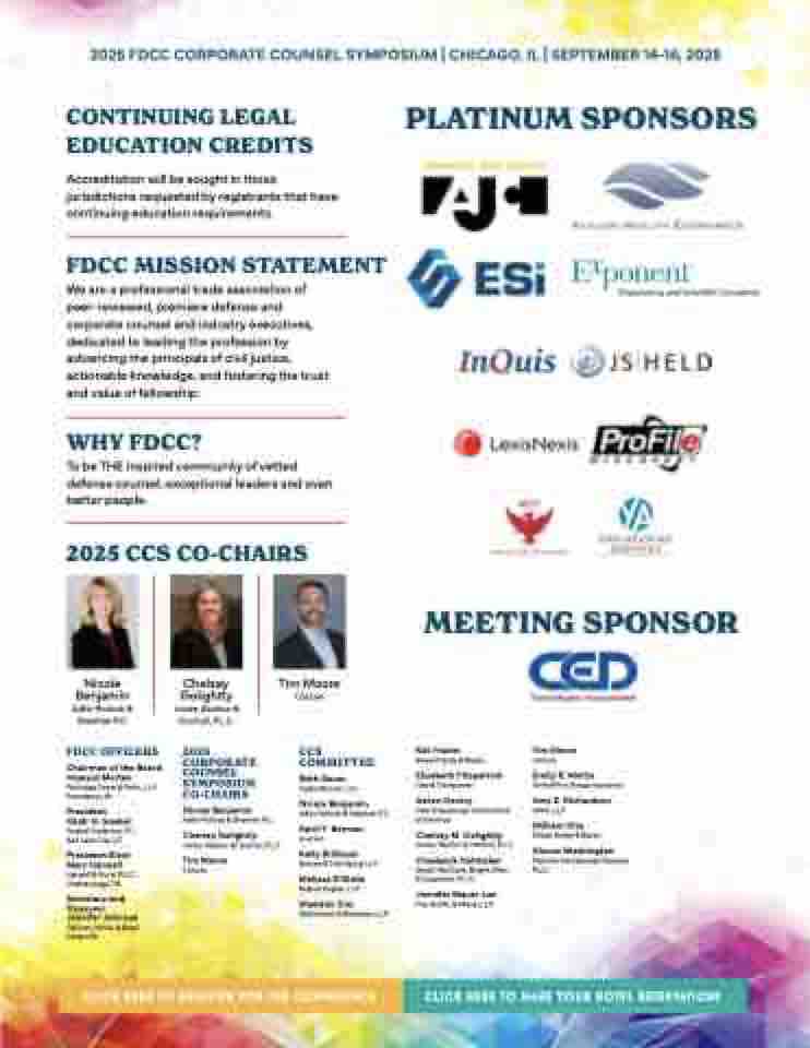 2025 FDCC CORPORATE COUNSEL SYMPOSIUM | CHICAGO, IL | SEPTEMBER 14-16, 2025