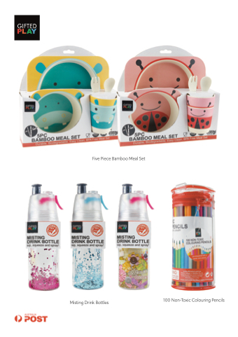 Five Piece Bamboo Meal Set Misting Drink Bottles 100 Non-Toxic Colouring Pencils