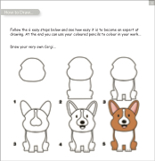 Follow the 6 easy steps below and see how easy it is to become an expert at drawing. At the end you can use your coloured pencils to colour in your work... Draw your very own Corgi... 9