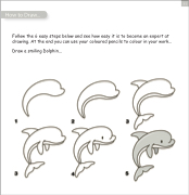 Follow the 6 easy steps below and see how easy it is to become an expert at drawing. At the end you can use your coloured pencils to colour in your work... Draw a smiling Dolphin... 11