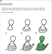 12 Follow the 6 easy steps below and see how easy it is to become an expert at drawing. At the end you can use your coloured pencils to colour in your work... Draw a coiled snake...
