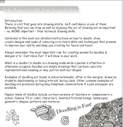 Popular kinds of doodles include cartoon versions of teachers or companions in a school, famous TV or comic characters, invented fictional beings, landscapes, geometric shapes, patterns and textures.