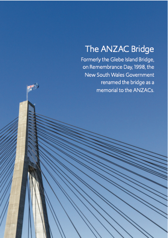 The ANZAC Bridge Formerly the Glebe Island Bridge, on Remembrance Day, 1998, the New South Wales Government renamed the bridge as a memorial to the ANZACs.
