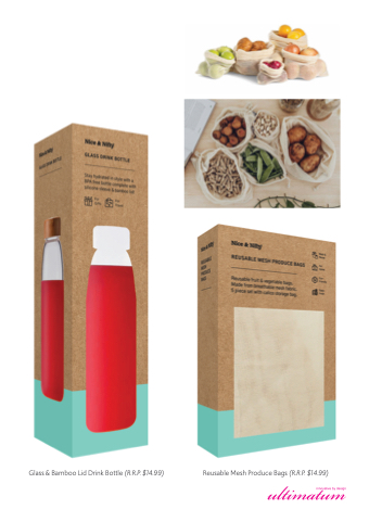 Glass & Bamboo Lid Drink Bottle (R.R.P. $14.99) Reusable Mesh Produce Bags (R.R.P. $14.99)