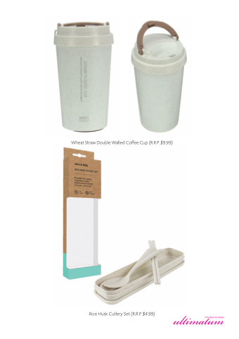 Wheat Straw Double Walled Coffee Cup (R.R.P. $9.99) Rice Husk Cutlery Set (R.R.P. $4.99)