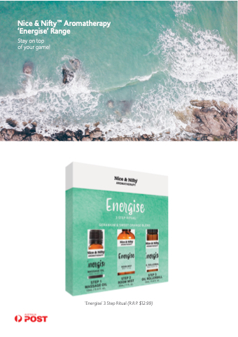 Nice & NiftyTM Aromatherapy ‘Energise’ Range Stay on top of your game! ‘Energise’ 3 Step Ritual (R.R.P. $12.99)