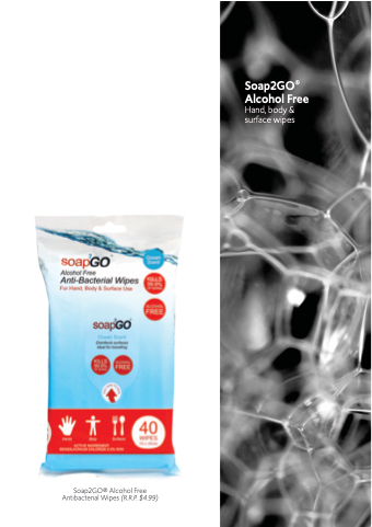 Soap2GO® Alcohol Free Hand, body & surface wipes Soap2GO® Alcohol Free Antibacterial Wipes (R.R.P. $4.99)