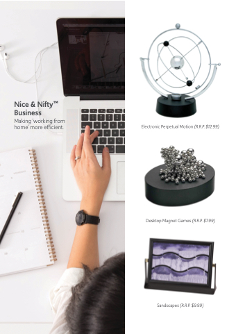 Nice & NiftyTM Business Making ‘working from home’ more efficient. Electronic Perpetual Motion (R.R.P. $12.99) Desktop Magnet Games (R.R.P. $7.99) Sandscapes (R.R.P. $9.99)