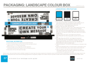 8. Side of Box: Base colour WHITE. Inset images with explanation ARIAL REGULAR 11pt. Brand logo position- top left corner 5mm from edge running horizontally. Use of symbols to emphasise features. Use rounded edge square with blue key line, black text. UPPER CASE ARIAL BOLD size to relate to available space.