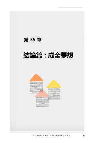 第 21 章 第 35 章 第 15 章 結論篇 : 成全夢想 結論篇 : 十字架, 饒恕跟和好的保証 ! 147 © Vineyard of Hope Church 基督福樂之家 2021