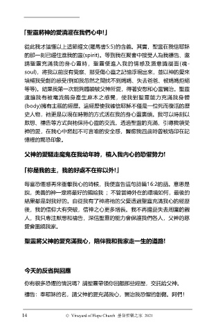 14 © Vineyard of Hope Church 基督福樂之家 2021