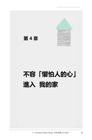第 4 章 4 3 2 1 不容「懼怕人的心」 進入 我的家 23 © Vineyard of Hope Church 基督福樂之家 2021