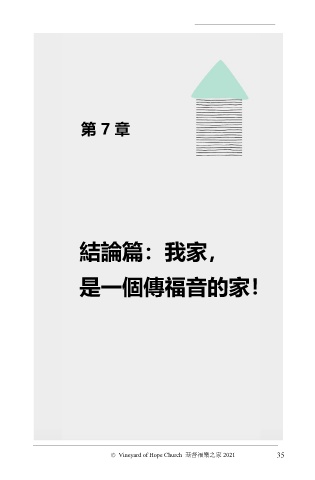 第 7 章 3 7 6 5 2 1 結論篇:我家, 是一個傳福音的家! 35 © Vineyard of Hope Church 基督福樂之家 2021