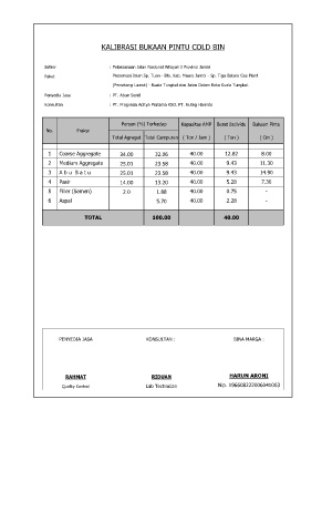 KALIBRASI BUKAAN PINTU COLD BIN
