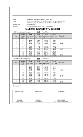 No Pintu Kg / Detik Kg / 5 Detik Kg / Menit Ton / Jam Rata rata