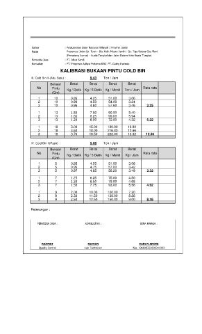 III. Cold Bin II (Abu Batu) : 9.43 Ton / Jam