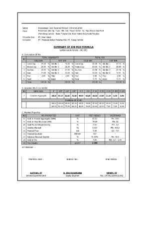 KETERANGAN : JMF AC - BC Menggunakan Anti Striping Agent Sebesar 0.25 % Terhadap Berat Asphalt