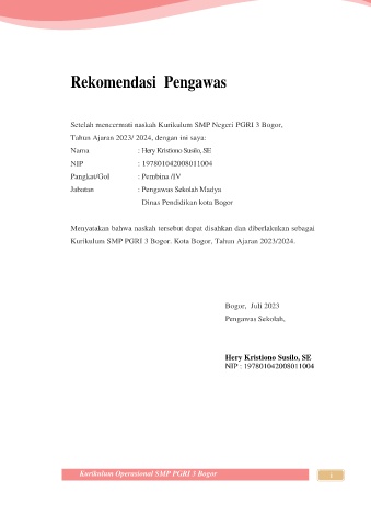 Kurikulum Operasional SMP PGRI 3 Bogor                                          i