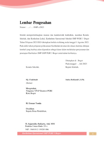 Kurikulum Operasional SMP PGRI 3 Bogor ii