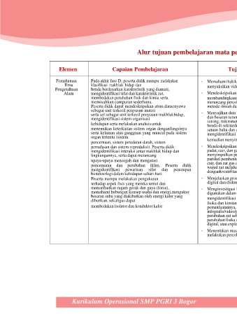 Alur tujuan pembelajaran mata pelajaran Ilmu Pengetahuan Alam Fase D