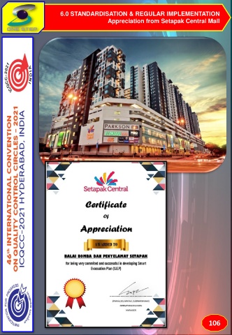 6.0 STANDARDISATION & REGULAR IMPLEMENTATION Appreciation from Setapak Central Mall 106