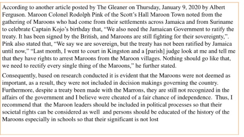 treaty. It has been signed by the British, and Maroons are still fighting for their sovereignty,”.