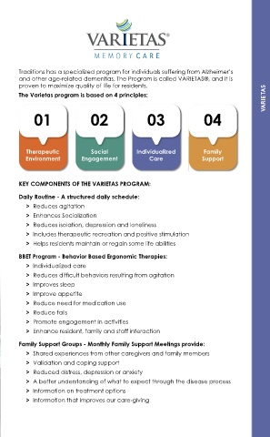 is that seniors can be as active > Nurses oversee the delivery The Varietas program is based on 4 principles: