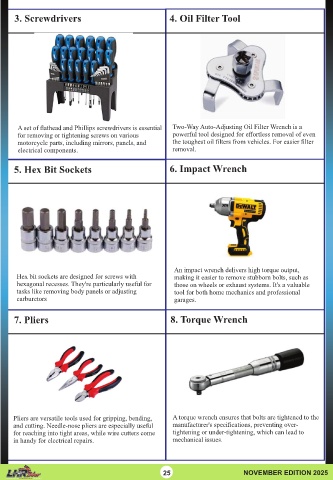 3. Screwdrivers 4. Oil Filter Tool